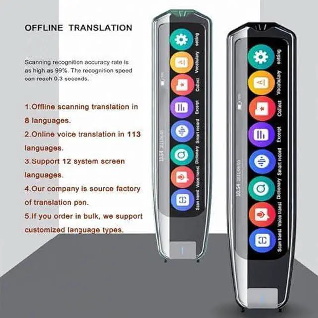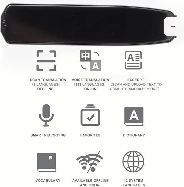 MULTI-LANGUAGE TRANSLATION: Our smart translator pen offers bidirectional voice online translation in 113 languages and offline translation in 8 languages, making it a versatile tool for communication needs. It also supports 12 language system interfaces for convenient use and flexibility.