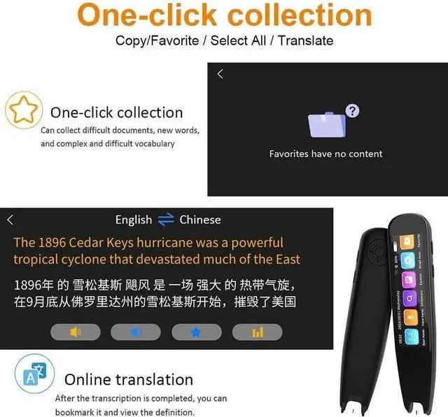 Multifunctional Translator Pen: Includes scanning translation, voice translation, intelligent recording, and built-in thesaurus to support diverse language learning and business needs.