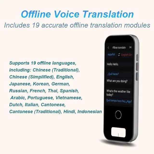 Offline Voice Translation in 19 LanguagesNo internet? No problem. This device supports offline voice translation for 19 essential languagesperfect for use in remote areas, during flights, or in places with limited connectivity.
