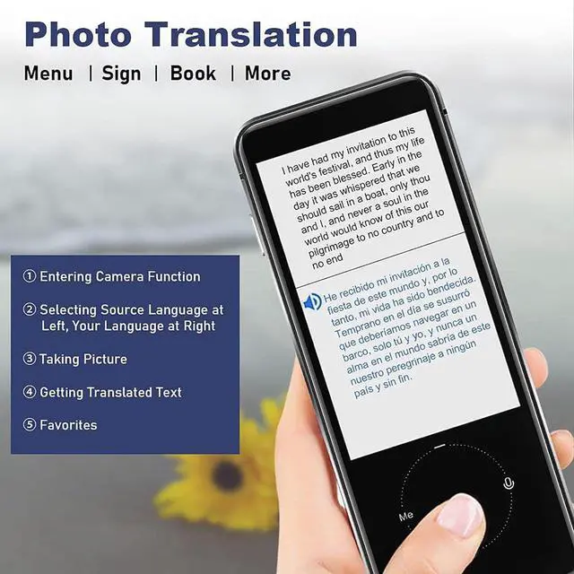 1.DIFFERENT LANGUAGES TRANSLATOR DEVICE : The translator device is simple to use and can instantly translate your sp into different foreign languages, improving your communication ls. Whether you are interested in learning a new language, enjoy travel or do business in other countries, the Language Translator Device provides real time, accurate translation.