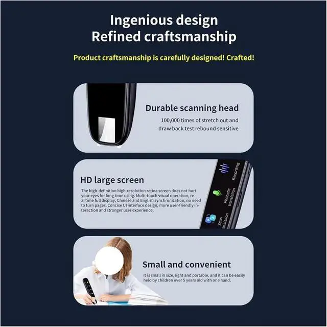 • High-Precision Scanning: Capable of scanning various surfaces and fonts including printed text, computer screens, and handwriting, ensuring versatile text recognition