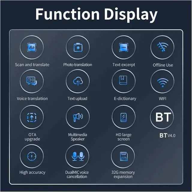 • Offline Capability: Provides translation without internet, supports dictionary functions and 10-word banks, with a high-capacity battery offering 160 hours of standby and 4 hours of continuous use