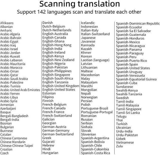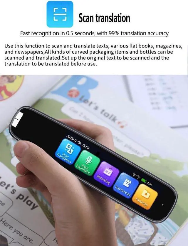 scanning translationUse this function to scan and translate texts, various flat books, magazinesand newspapers,All kinds of curved packaging items and bottles can bescanned and translated.Set up the original text to be scanned and thetranslation to be translated before use.