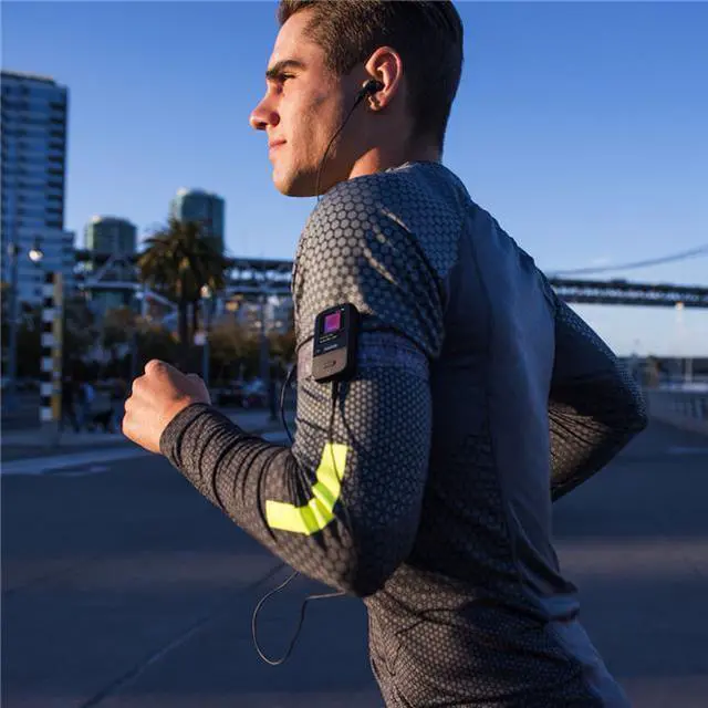 Keep the music on and your phone off with the lightweight Clip Sport Go MP3 player that's designed for your workout. Supporting iTunes and other audio content, its high-performance dynamic acoustic quality makes almost any activity a richer experience. And because it clips on easily, it's perfect for the way you move. The Clip Sport Go player also features a built-in FM radio, along with a high-resolution LED screen and physical buttons that help you easily navigate through your content. Holding up to 4,000 songs (16GB) and up to 18 hours of battery life, your favorite music helps you go the distance.