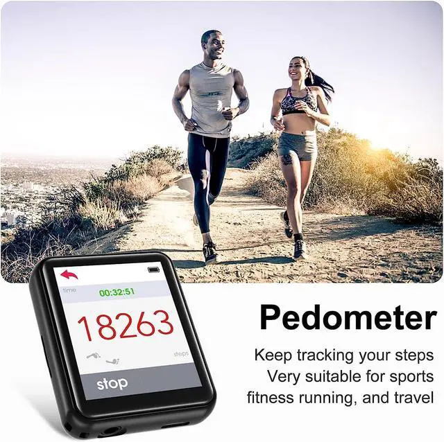 [Multi-function MP3 player]: Not only supports Bluetooth connection, but also supports home screen switching. FM radio, recording, picture browsing, video playback, file browser and e-book reading (only supports txt format), also supports time screen saver, one-key lock, built-in pedometer function, ideal for sports running, travel [Built-in speaker, you can enjoy music without headphones] It is for children, old people and wives! Great gift