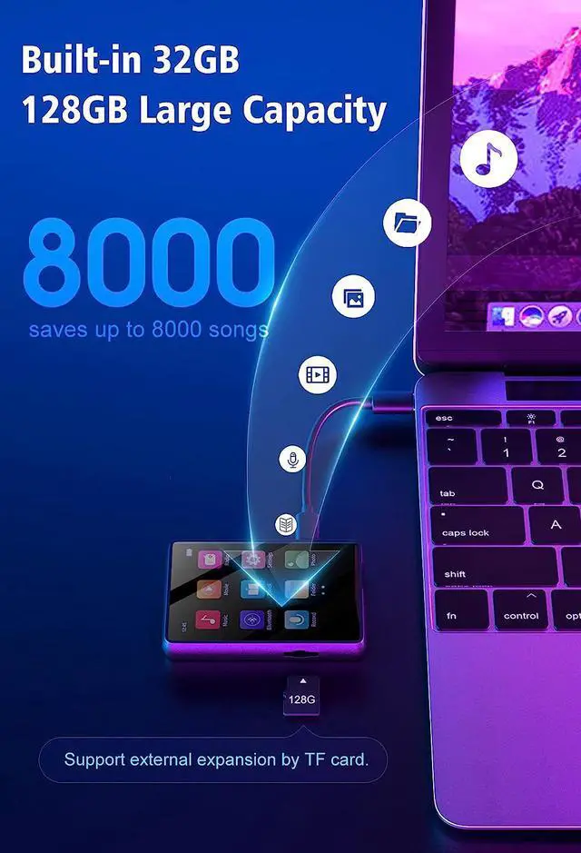 32GB + 128GB MemoryThe internal 32GB memory saves up to 8000 songs. In addition, you can expand the external memory to 128GB via the micro SD card slot. No more worries about insufficient memory.