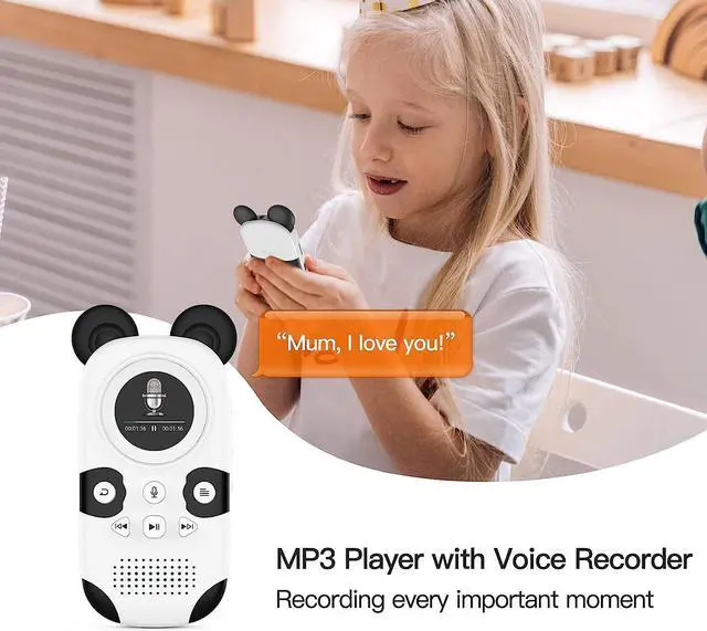 [Cartoon Design MP3 Player for Kids] There comes a time when kids are too young for phones but can still listen to their favorite music. The portable music player looks like a panda, easy for child to operate and navigate. Lightweight & small, perfect for little hands