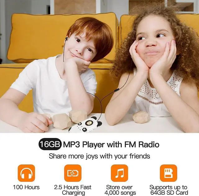 [16GB Internal Memory & Longer Battery Life] Child won't miss their favorite radio stations with the 16GB MP3 player with FM radio. Record every important time with the MP3 player with recorder. Supports up to 64GB micro SD card. And last 100 hours on a single charge