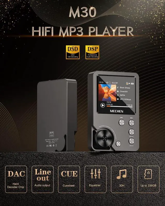 Large capacity + large memoryThe player has a large capacity battery of 1500 mAh, which can be fully charged in 2 hours and play continuously for 25 hours. The M30 player has no built-in memory, but an additional 64GB SD card has been inserted into the player, allowing you to better manage your song files without worrying about the memory capacity. Expandable up to 256GB