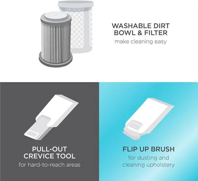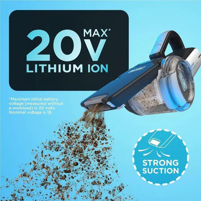 Dustbowl capacity 15 ounces; Lithium technology for strong suction and fade free power