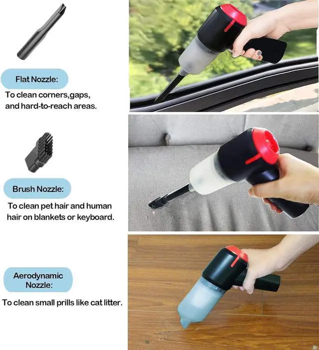 WIDELY APPLICABLE ACCESSORIES - The lightweight car vacuum cordless has 4 different nozzles, which can achieve different cleaning purposes. It can clean in all directions without dead ends. And with vacuum nozzle and blow nozzle, which can be used for vacuuming and swim ring blowing.