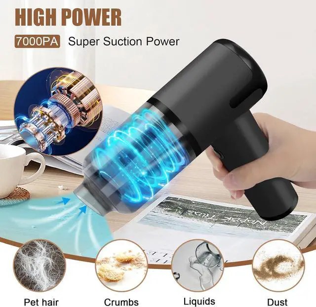 7000PA Super Powerful SuctionThis car handheld vacuum delivers up to 7000PA powerful suction power to make cleaning a breeze, and can be used to clean dust, dirt, and pet hair from cars, sofas, windows, computer mainframes, and other hard-to-reach places.