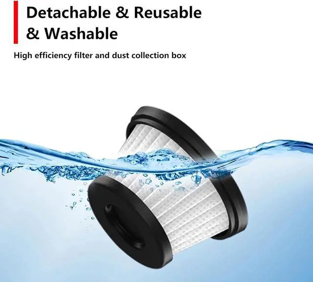 Detachable Cleaning DesignThe dust box and HEPA filter of this Wireless handheld vacuum can be detached, the reusable and cleanable filter improve the use time of the car vacuum cleaner. Please clean the filter to ensure that the vacuum cleaner works properly if the filter is filled with dust.