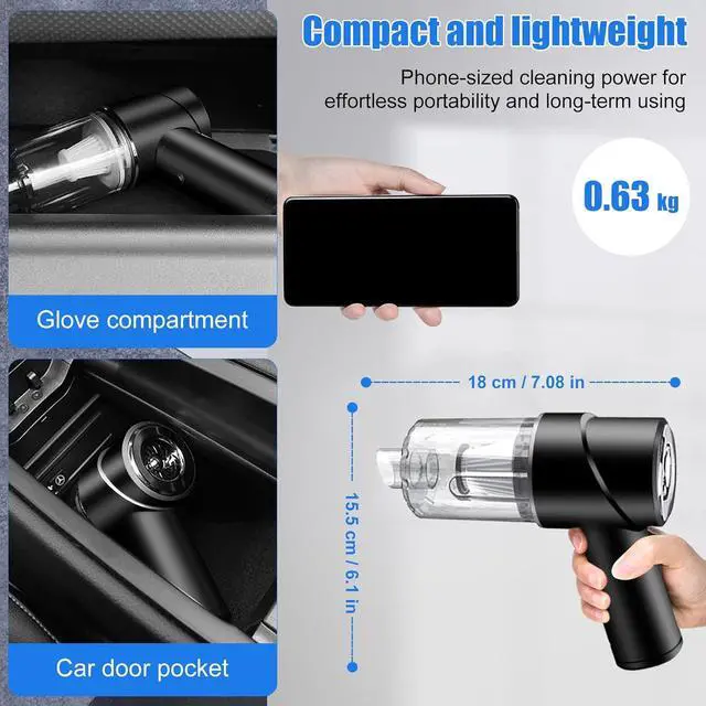 Small size and portableThis handheld mini car vacuum cleaner is small and lightweight enough to single-handed operate and fit easily in the car's storage box. Cordless and one-button start design making it effortless to quickly clean crevice areas at home/office/car, such as sliding doors track, sofas, keyboards, seats, etc.