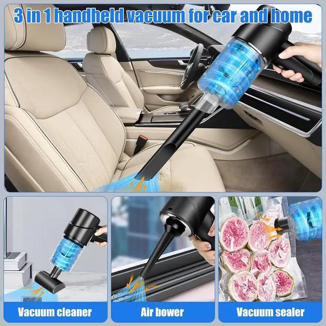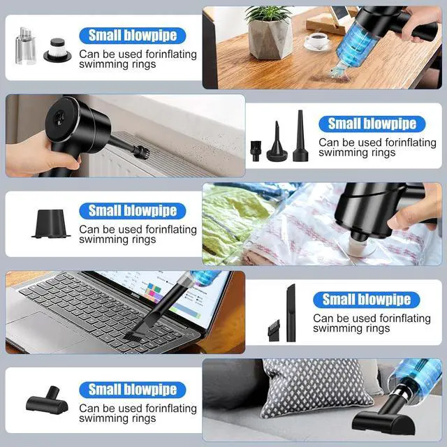 3 in 1 Multi-functional car vacuum cleanerThis portable vacuum cleaner has various nozzles that can switch between 3 modes: handheld vacuum mode, dust blower mode, vacuum sealing mode. It can clean not only large areas of dust, but also in crevices and It can also be used to pump up PVC toys or swimming rings, or to vacuum seal. (Note: Dont fit for balloons inflatable. )