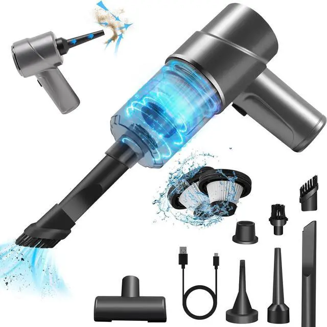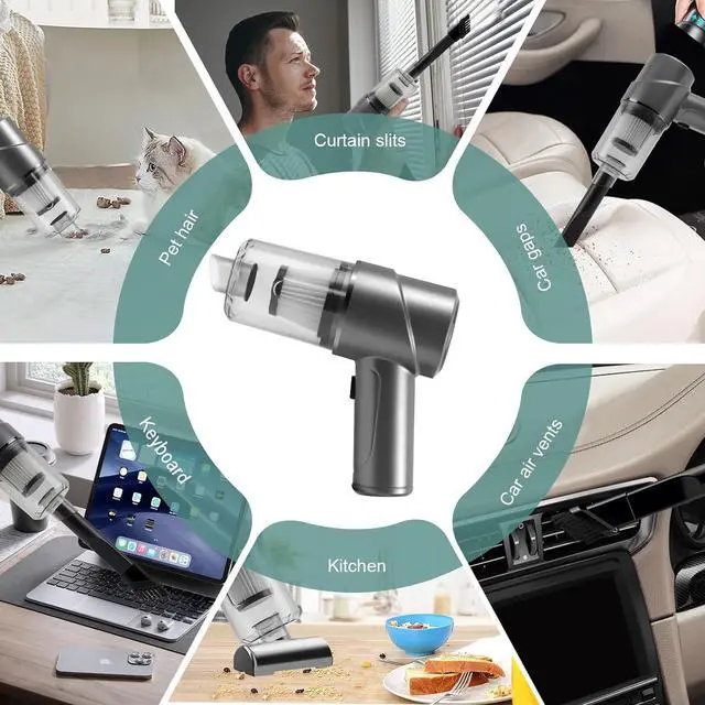 3 in 1 handheld vacuum cordlessThis portable vacuum cleaner has a blow brush and nozzle which makes it also using like a air duster. Combine the vacuum cleaner with blowing the dust buster, also bring you a efficiently cleaning experience and simplify your life. This car vacuum cleaner equipped with several accessories, you can use it separately or together to improve your cleaning work efficiency.