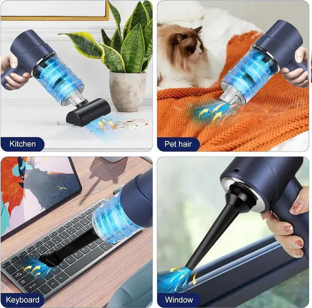 HANDHELD VACUUM CLEANER: This handheld vacuum cleaner is equipped with vacuuming, blowing, inflation which can clean every inch of space. The powerful function of the vacuum cleaner collector makes the dust in all places have nowhere to hide and makes all of your items look new.
