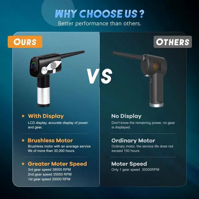 Powerful Brushless Air Duster, Take 99% Duster Away
