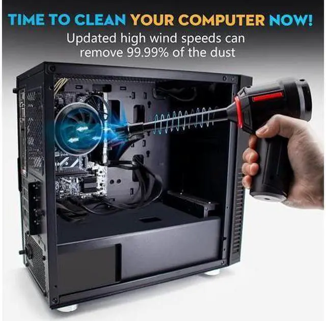 - As an updated compressed air duster, theres no more air leaks. You can also use this air duster to blow the dust away from computers with higher efficiency compared to other compressed air can dusters. CORN keyboard cleaner adopted rechargeable battery and cordless free design which is portable for you to clean desk, laptop, pc, computer and so on.