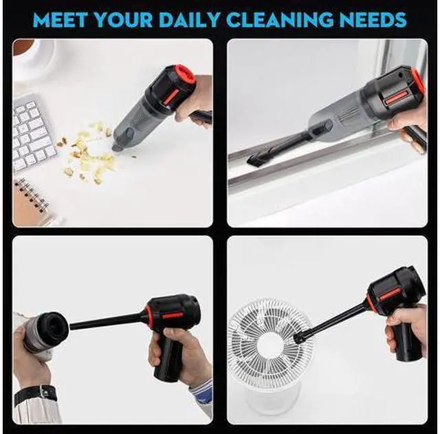 Corn electric compressed air duster, mini vacuum cleaner is professional in cleaning desktop, office desk, workstation, workbench, dinner table and so on.
