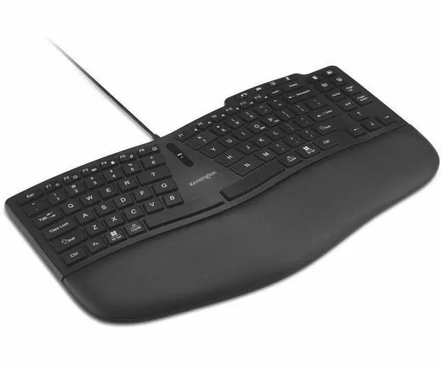 Ergonomic Design - The thoughtfully designed compact curved key layout, built-in wrist pad, and front keyboard legs support optimal hand and wrist positioning for all-day ergonomic comfort and productivity.