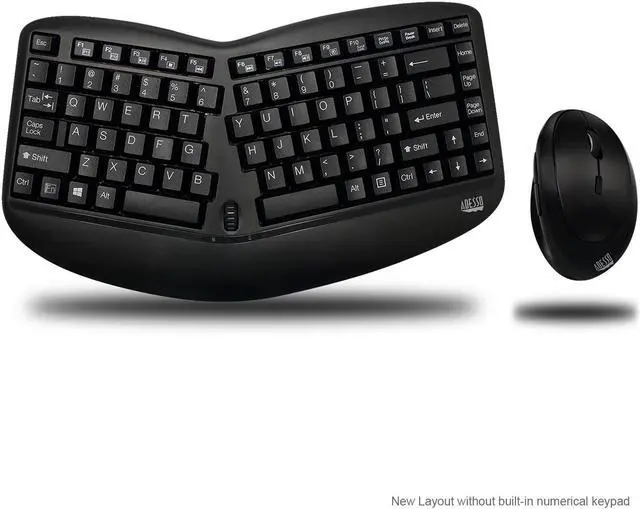 Adesso WKB-1150CB 2.4GH z radio frequency wireless technology with ergonomic and compact size. Has split key desgin aswell as a built-in scroll wheel. The vertical design, integrated palm rest and enhanced optical engine make for a very comfortable experience when using this keyboard