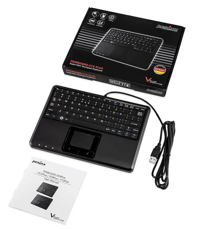 Perixx PERIBOARD-510H PLUS, Wired Keyboard with Touchpad & USB Port - USB - Super Mini 9.05"x6.30"x0.90" Dimension Built-in 2 x USB2.0 Hubs - Silent X Type Scissor Keys