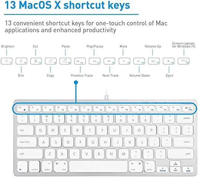 CONVENIENT SHORTCUTS: 13 Apple shortcut keys (cut/copy/paste, iTunes control, Volume up/down, etc. ) and Windows PC compatible multimedia shortcutsSTRONG WIRED CONNECTION WITH NO BATTERY HASSLE: The 4'7" (140 cm) USB cable guarantees a stable connection with no signal loss and eliminates the need of costly batteriesCOMFORTABLE