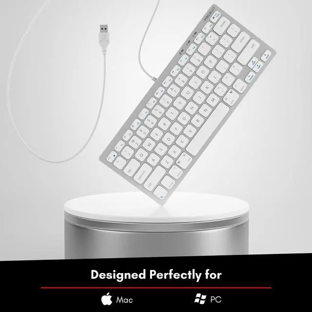 ULTRA COMPACT WIRED KEYBOARD: Reclaim desk space with this small keyboard that only takes up only two thirds the space of a traditional keyboardBROAD COMPATIBILITY - PLUG and