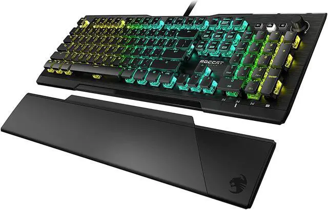 The ROCCAT Vulcan Pro is the full-size series variant that features the tactile Titan Switch Optical. ROCCAT is the first in the industry to engineer an optical switch that has a familiar mechanical key stroke feeling. This technology equips you with lightspeed actuation and incredible precision. The switch adds to a comprehensive feature set that gamers know and love. The low-profile design is engineered for comfort and to reduce fatigue, impressive durability and build quality thanks to its reinforcing black anodized aluminum top plate and switches rated to 100 million keystrokes, dedicated mixer-style audio controls, detachable palm rest and per-key AIMO RGB lighting. We\u2019re confident in the quality and longevity of our products. To ensure additional peace of mind we provide a 2-year limited manufacturer warranty.