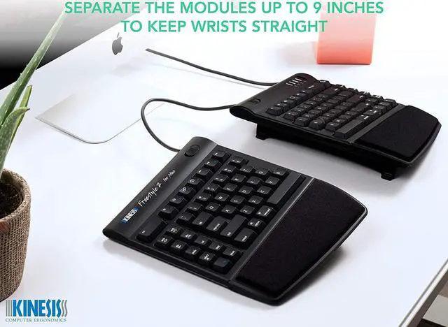 • AWARD-WINNING SPLIT DESIGN: Unlike fixed ergonomic keyboards, the Freestyle2 allows you to rotate and separate the key modules up to 9" to achieve natural hand, wrist and forearm positions for your specific body type and preferences.