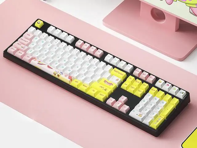 Corn Tri-Band RGB Wireless Bluetooth Wired 108 key Customized Mechanical Keyboard Spongebob Cartoon Animation Co-branding Theme PBT keycaps Anti-Ghosting Gaming Keyboard Silver Switch
