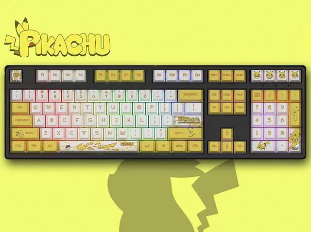 Corn Tri-Band RGB Wireless Bluetooth Wired 108 key Customized Mechanical Keyboard Pikachu Cartoon Animation Co-branding Theme PBT keycaps Anti-Ghosting Gaming Keyboard Brown Switch