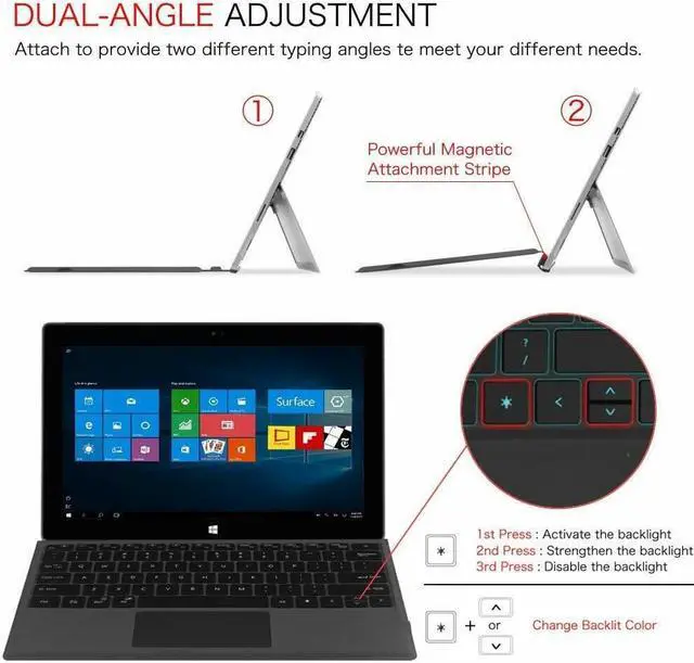 Exclusive design for New Microsoft Surface Pro 7 Plus (2021) / Surface Pro 7 (2019) / Surface Pro 6 (2018) / Surface Pro 5th Gen (2017) / Surface Pro 4 / Surface Pro 3 12.3 inch tablet, with slightly spread out keys for a more familiar and efficient typing experience that feels like a traditional laptop.