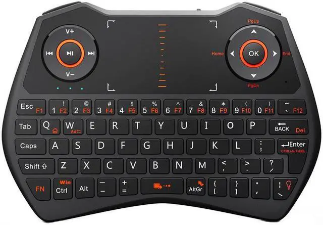 * 2.4G wireless connection, enjoy long-range wireless control. Innovation design of mouse function, you can use Touchpad or air mouse to realize traditional mouse features.