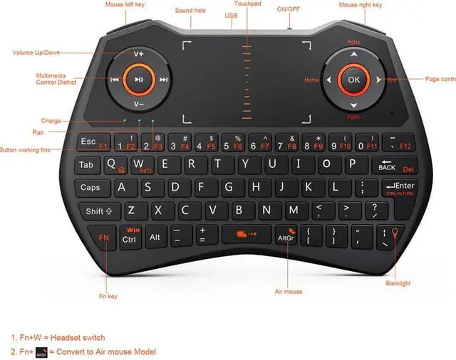 * Multifunction: Mini keyboard + Touchpad + 6-axis air mouse + Audio chat, smart and portable size.