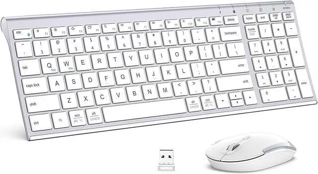 WIRELESS KEYBOARD FOR MAC AND WINDOWS -- Fully compatible with Windows and Mac OS systems, this wireless keyboard gives best of both worlds, letting you use either Windows or Mac keyboard layouts depending on your preference. All you have to do is switching the USB receiver between the devices you want to connect to and press Fn+Q/W keys. Plus, the Fn lock and easy-access media keys come built-in on this portable keyboard to make both work and downtime a better experience.