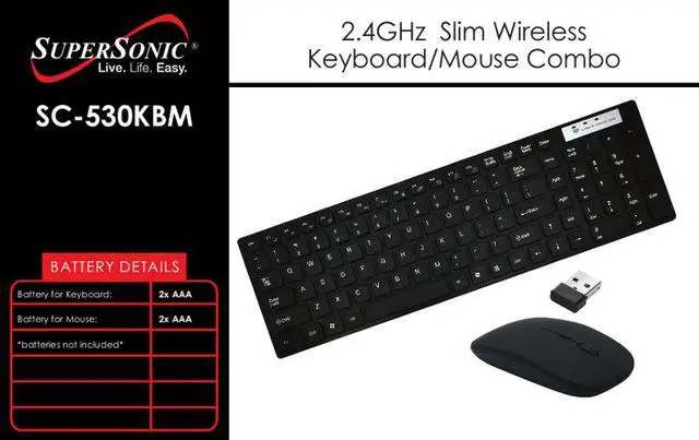 SuperSonic SC-530KBM 2.4GHz Slim Wireless Keyboard with Wireless Mouse Black