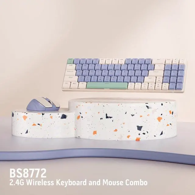 Redragon BS135 Wireless Keyboard and Mouse Combo, 75% 78 Keys 2.4Ghz Wireless Low-Profile Mechanical Keyboard w/Rechargeable Battery, Single Blue Blacklight, 2400 DPI Ergonomic Mouse (Lollipop Blue)