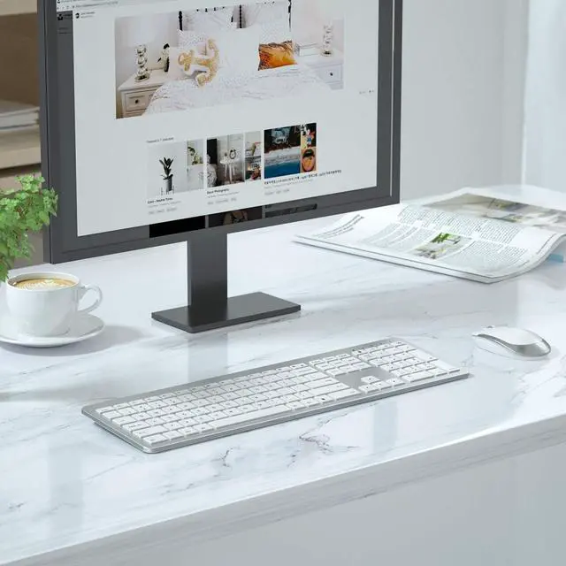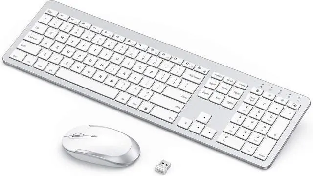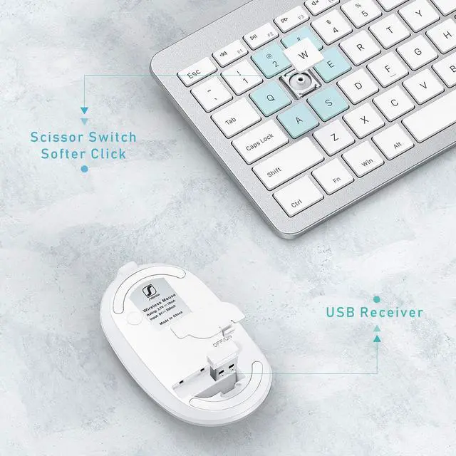 Sleek & Modern Looking and Easy to Set Up -- Flat thin keyboard mouse with a modern silver & white combination of color. Super easy installation, all you have to do is plug the USB receiver and then give them seconds to install automatically
