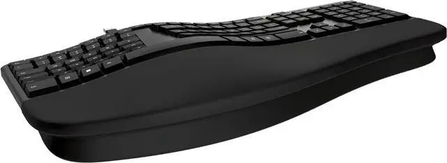 Made for a comfortable all-day typing experience, the Ergonomic Keyboard, Designed by Microsoft, is slim, refined and considered. The keyboard features an ergonomic split keyset, improved cushioned palm rest, shortcut keys, and supportive structure intended to reduce fatigue while enhancing your creative experience.