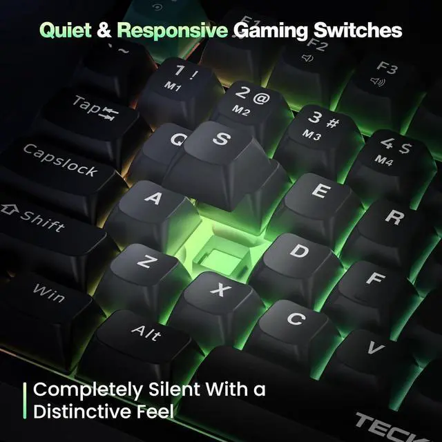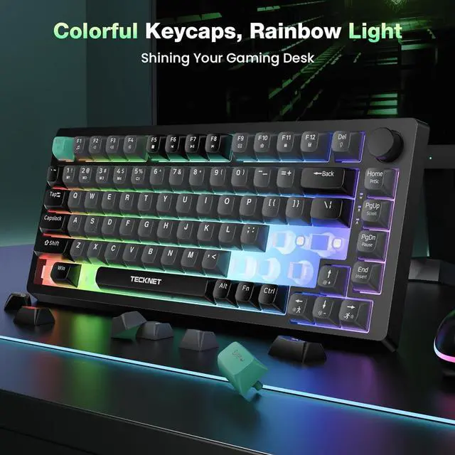 Vibrant Keycaps & Rainbow BacklightEnjoy mixed color keycaps and a dynamic rainbow backlight with 6 effects and 8 colors to personalize your experience. Whether gaming or typing in dim environments, the customizable backlight enhances focus.
