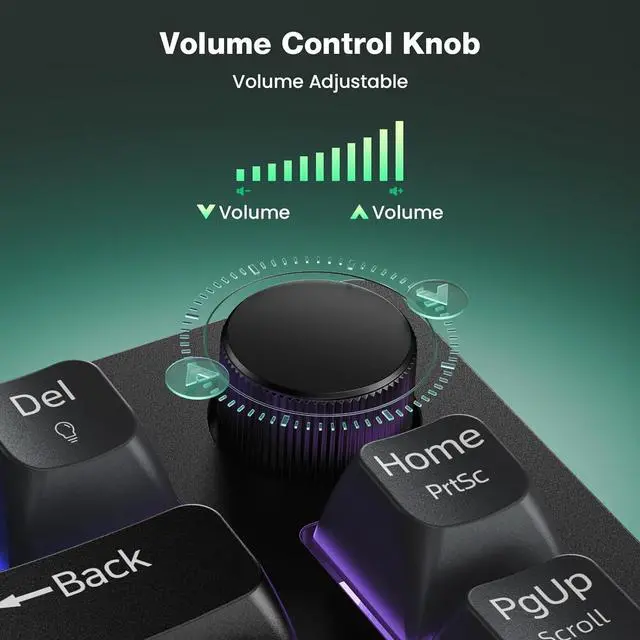 Dedicated Volume Control KnobEasily control your audio with the gaming keyboard's volume knob. Twist for precise adjustments or press to mute instantly, ensuring a seamless and focused gaming or typing experience.