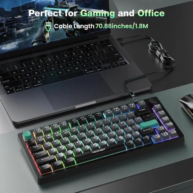 82 Keys Compact DesignThis 75% gaming keyboard offers a sleek layout with 82 keys, ideal for gaming and typing. With no numpad, it maximizes desk space while keeping essential keys easily accessible. Enjoy performance without compromising on space!