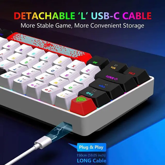 FELiCON 68 Percent Keyboard and Type C cable can be separated, making it more portable and concise