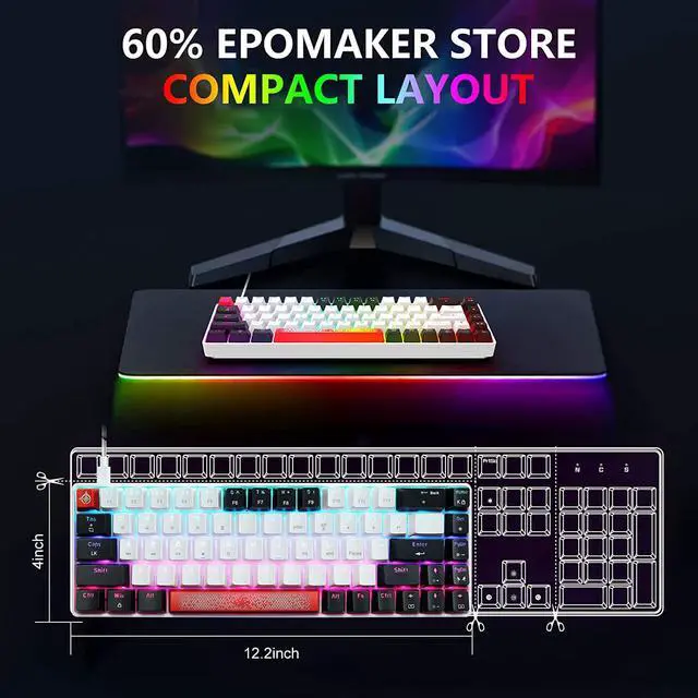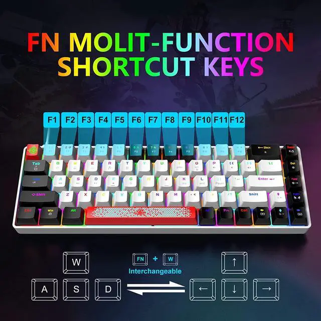 For some monochrome small keyboard, if you are tired of monotones, you can choose this elegant and mature mixed color matching classic style. In addition,This 68 keys mini keyboard has FN function key combination and Shift function key combination, which can realize the functions of a full-size 104-key keyboard.