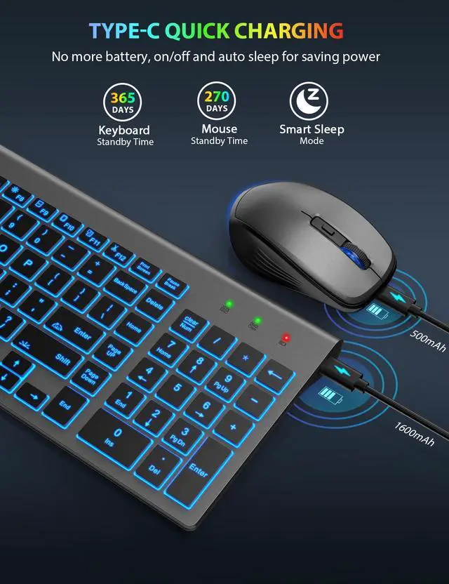 This Backlit rechargeable keyboard mouse combo compatible with Windows and Mac OS
