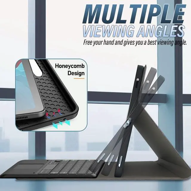 This case with keyboard built-in 3 viewing angle anti-slip grooves, it is convenient to adjust the iPad angles to meet your working, studying, and playing need.
