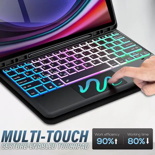 A spring mechanism underneath each key ensures a tactile response with every stroke, helping you to input faster and with less error than on the touchscreen keyboard of the galaxy tablet.