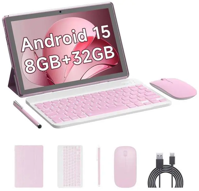 10.1 Inch Android 15 Tablet, 8GB (3GB fixed memory+5GB virtual memory) RAM+32GB ROM/ 1TB Expandable Tablet, 1.8Ghz Quad-core Processor Tablet, 1280*800 IPS HD Display Tableta, 2025 Newest 2 in 1 Tablets with Keyboard/ Mouse/ Case/ Stylus, 2MP+8MP Dual Cameras, 6000mAh Battery Tablet, 2.4G+5G WiFi 6 BT 5.0 Tableta PC.
